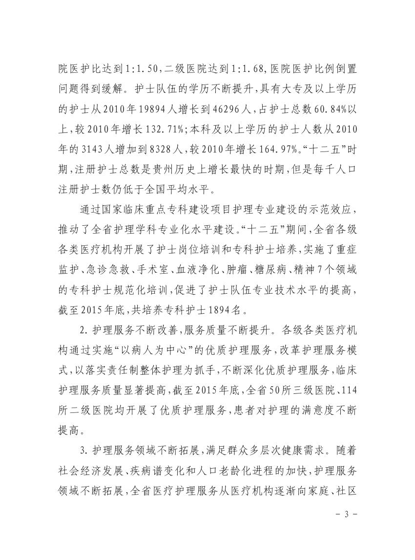 解读《贵州省护理事业发展规划(2016-2020年)》