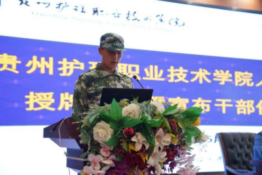 5月13日,“贵州护理职业技术学院人民武装部”授牌仪式暨宣布干部任命大会在我院召开。会上贵定县副县长赵泽敏宣读了黔南州委常委会关于成立高校武装部的会议纪要,贵定县人民武装部政委杭千勇代表武装部党委宣读关于贵州护理职业技术学院武装部干部的任职命令,并为我院成立高校人民武装部进行授牌。