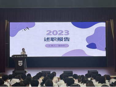 近日,为进一步增强学生自主管理能力,提升组织协调力,优化学生服务水平,学生自主管理委员会(自管委)在学院正式召开述职报告大会。学生工作处各位老师,自管委全体主席、负责人,部员代表及各班学生代表参加了此次大会。