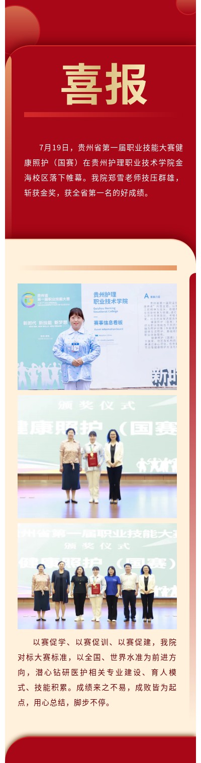 喜报│我院郑雪老师在贵州省第一届职业技能大赛健康照护(国赛)中喜获佳绩