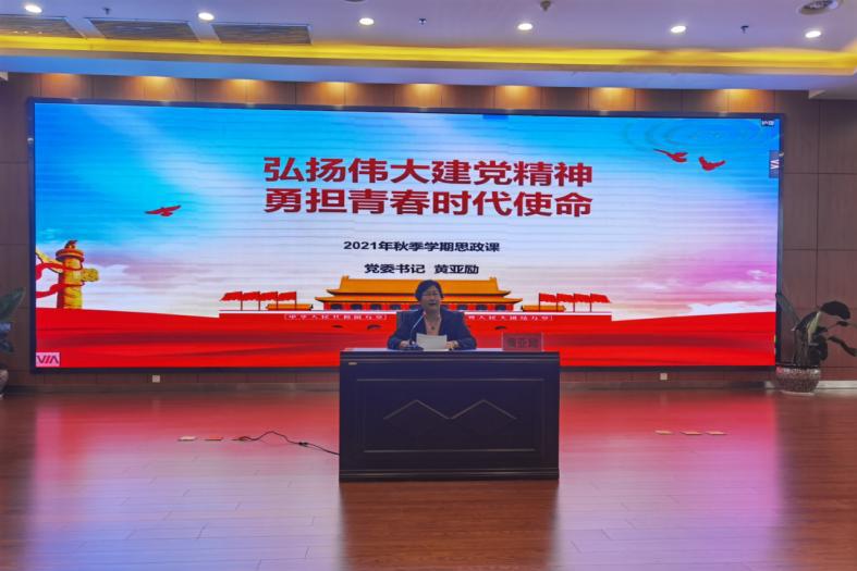 10月13日下午,在金海校区学术交流中心,院党委书记黄亚励以《弘扬伟大建党精神 勇担青春时代使命》为题给我院2021级高职新生讲授思政课。