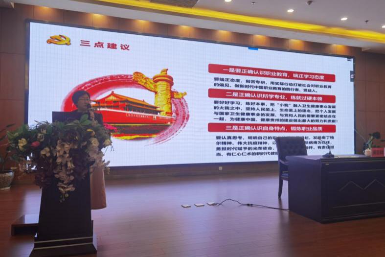 黄亚励从三个方面与同学们进行了交流,一是教育大家深刻理解伟大建党精神的科学内涵和时代价值,牢固树立共产主义的远大理想和马克思主义的信仰;二是结合伟大抗疫精神和“请党放心,强国有我”主题,启发大家深刻理解新时代卫生健康职业院校青年学生的使命担当,立志为健康中国、健康贵州的建设作贡献;三是引导大家深刻理解学校学习和人生理想的关系,勉励同学们牢记初心使命,赓续红色血脉,在实现中华民族伟大复兴的新征程上勇挑重担、勇克难关、勇斗风险,努力做德智体美劳全面发展的社会主义建设者和接班人。
