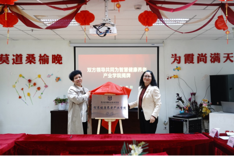 最后,双方领导共同签署了共建智慧健康养老产业学院合作协议书,并为智慧健康养老产业学院揭牌。