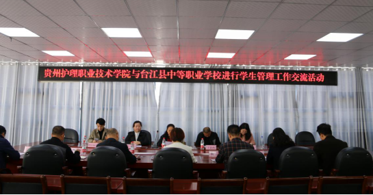 为扎实推进台江县中等职业学校高质量发展帮扶工作,快速提升该校护理专业教师的学生管理能力,2019年10月29日,我院学生工作处临时负责人毛红云,学生工作处思政科临时负责人蓝俊、干事詹江翰墨,保卫处临时负责人丁亚西,中专部学生管理办公室临时负责人叶欣到台江县中等职业学校开展护士服捐赠及学生管理交流活动。