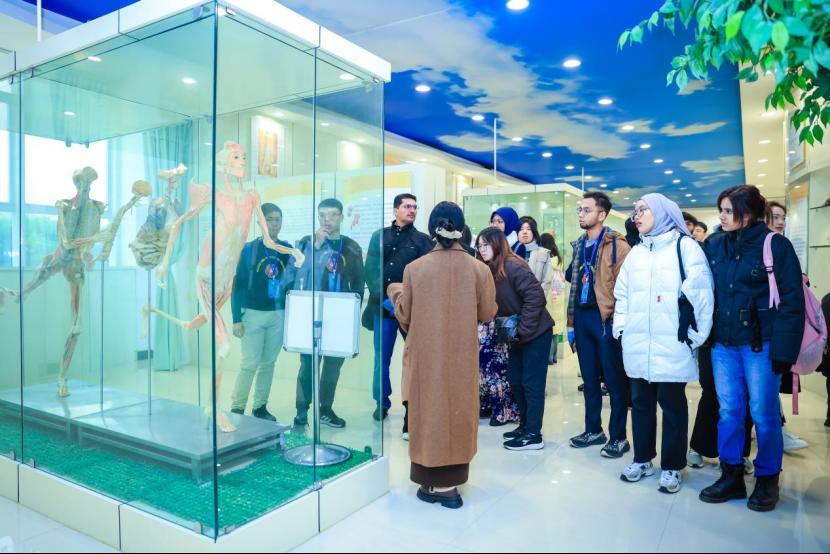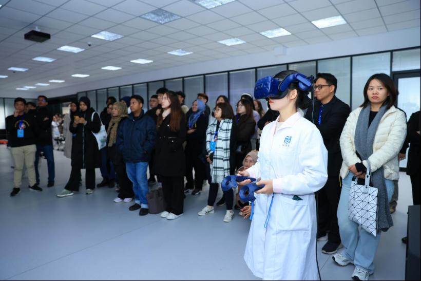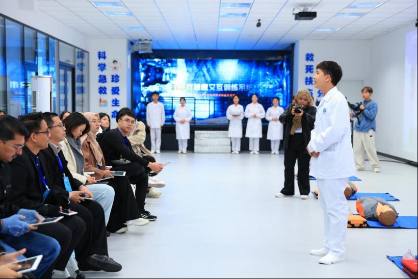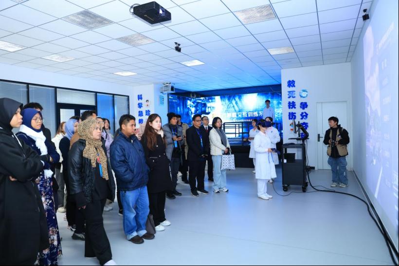随后,马来西亚师生前往我院急危重症虚拟仿真产教融合实训基地和人体生命科学馆进行参观学习。在急危重症虚拟仿真实训基地,他们学习急救科普知识、操作急救虚拟仿真软件、练习急救技能;在人体生命科学馆,他们了解了人体结构,探索人体奥妙,使其感悟“人体之美美不胜收,人体奥妙奥妙无穷”。