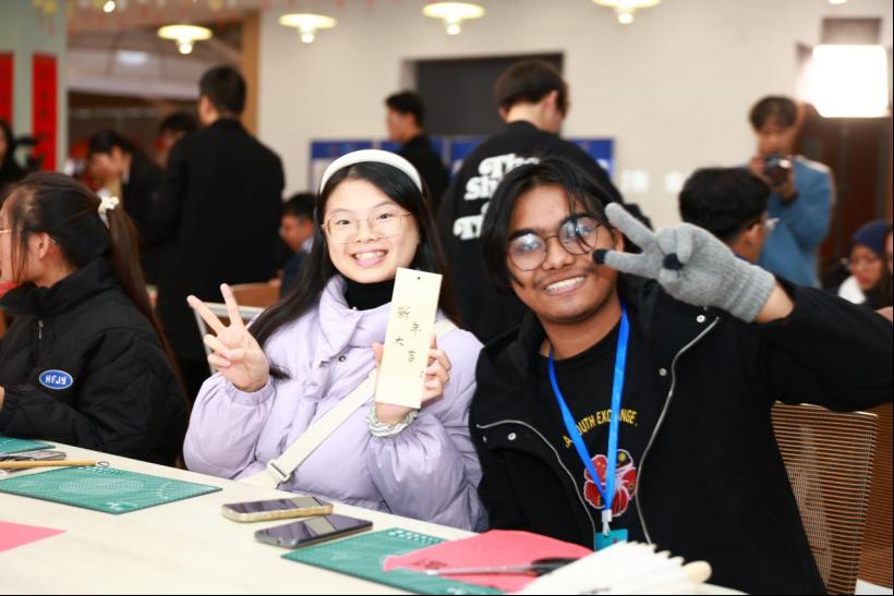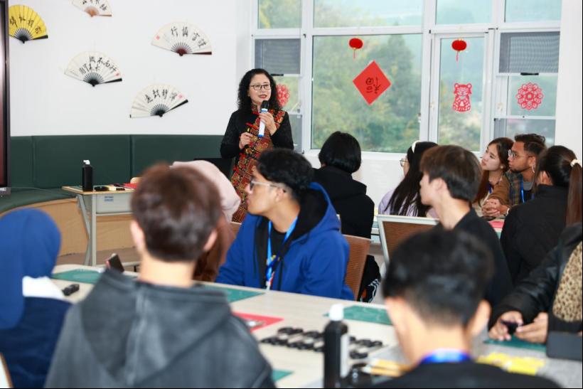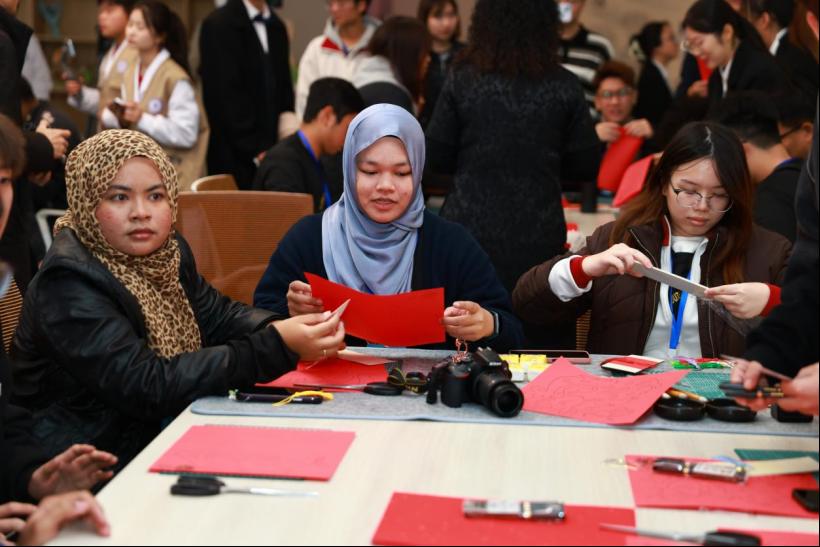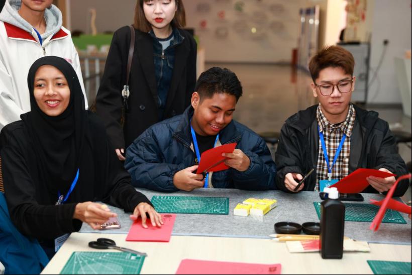 春节,是我国最为重要的传统节日,承载着中华民族对于新年的美好期待和愿景。为让32名马来西亚高校师生了解中华传统文化,江智霞院长在我院科教协同创新中心为他们开展了一场别开生面的“中华优秀传统文化——春节”讲座。江智霞院长从“春节的起源、历史发展、习俗活动、文化内涵”四个方面进行讲解,马来西亚师生们热情参与了写春联、剪纸、制作手工艺品。