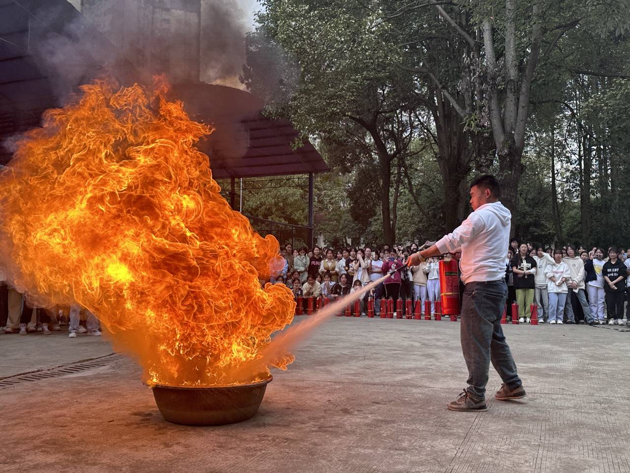 学生实操使用灭火器