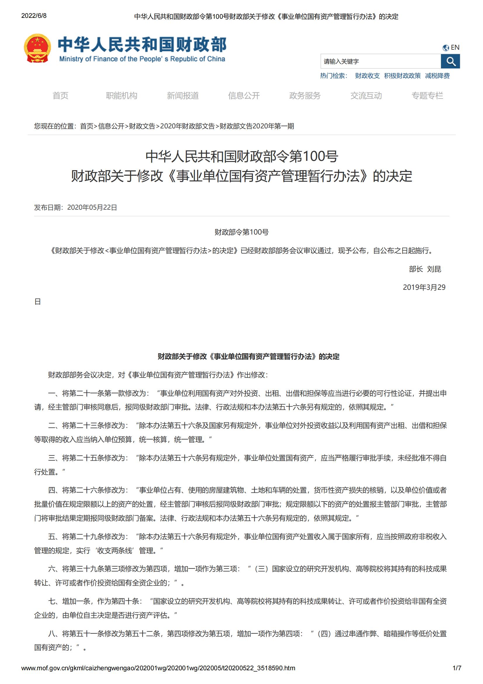 《事业单位国有资产管理暂行办法》(财政部令第100号)
