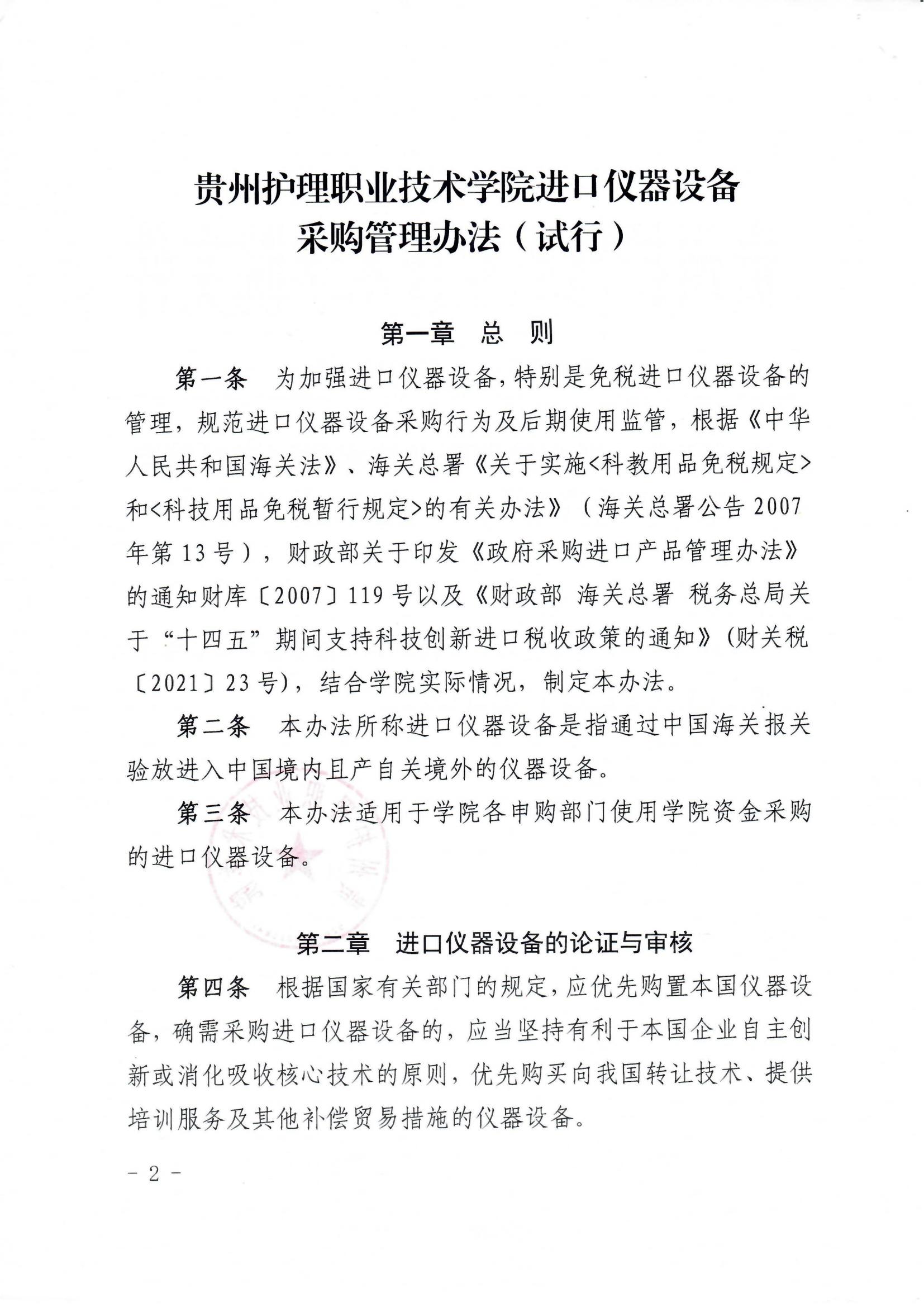 贵州护理职业技术学院进口仪器设备采购管理办法(试行)