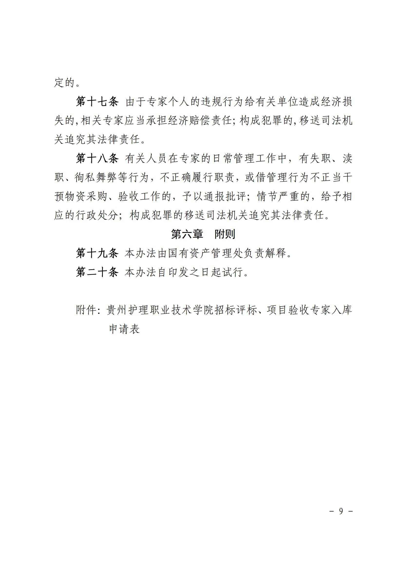 贵州护理职业技术学院招标评标、项目验收专家库管理办法(试行)