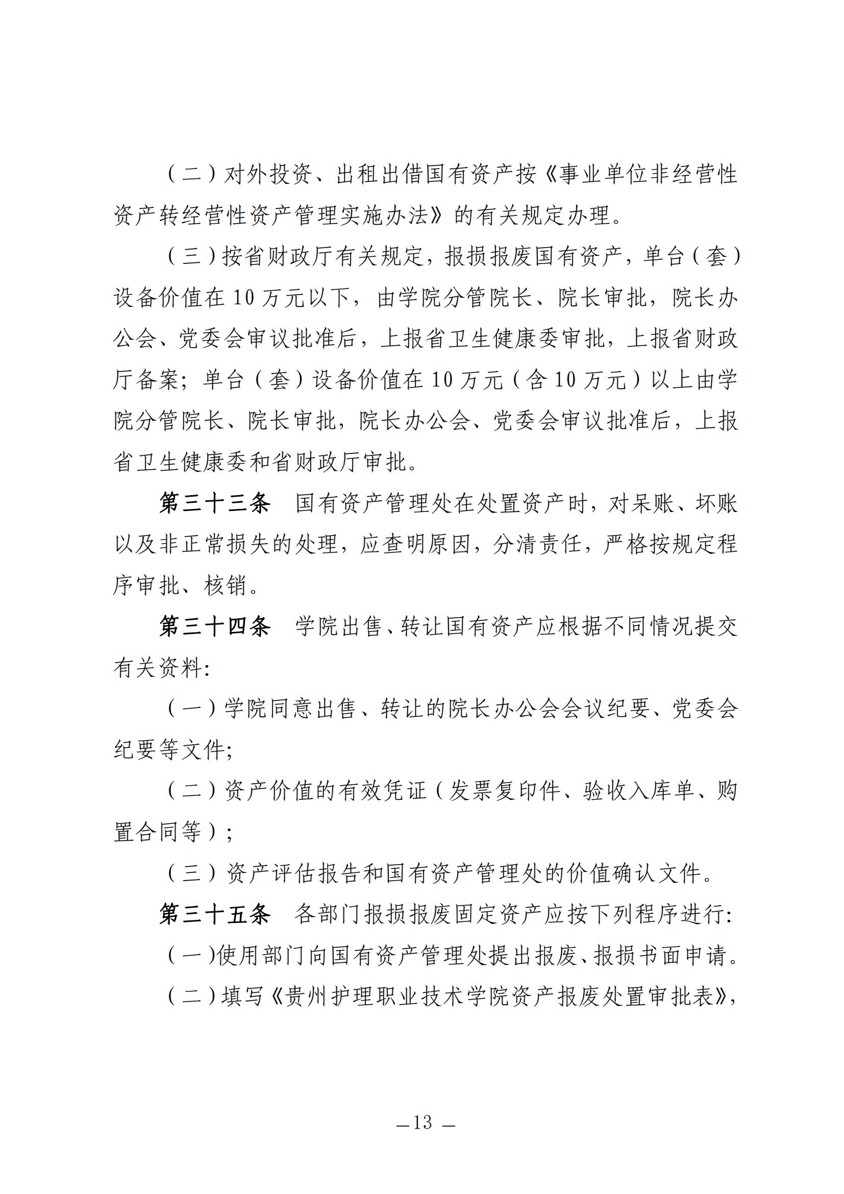 贵州护理职业技术学院国有资产管理办法(试行)