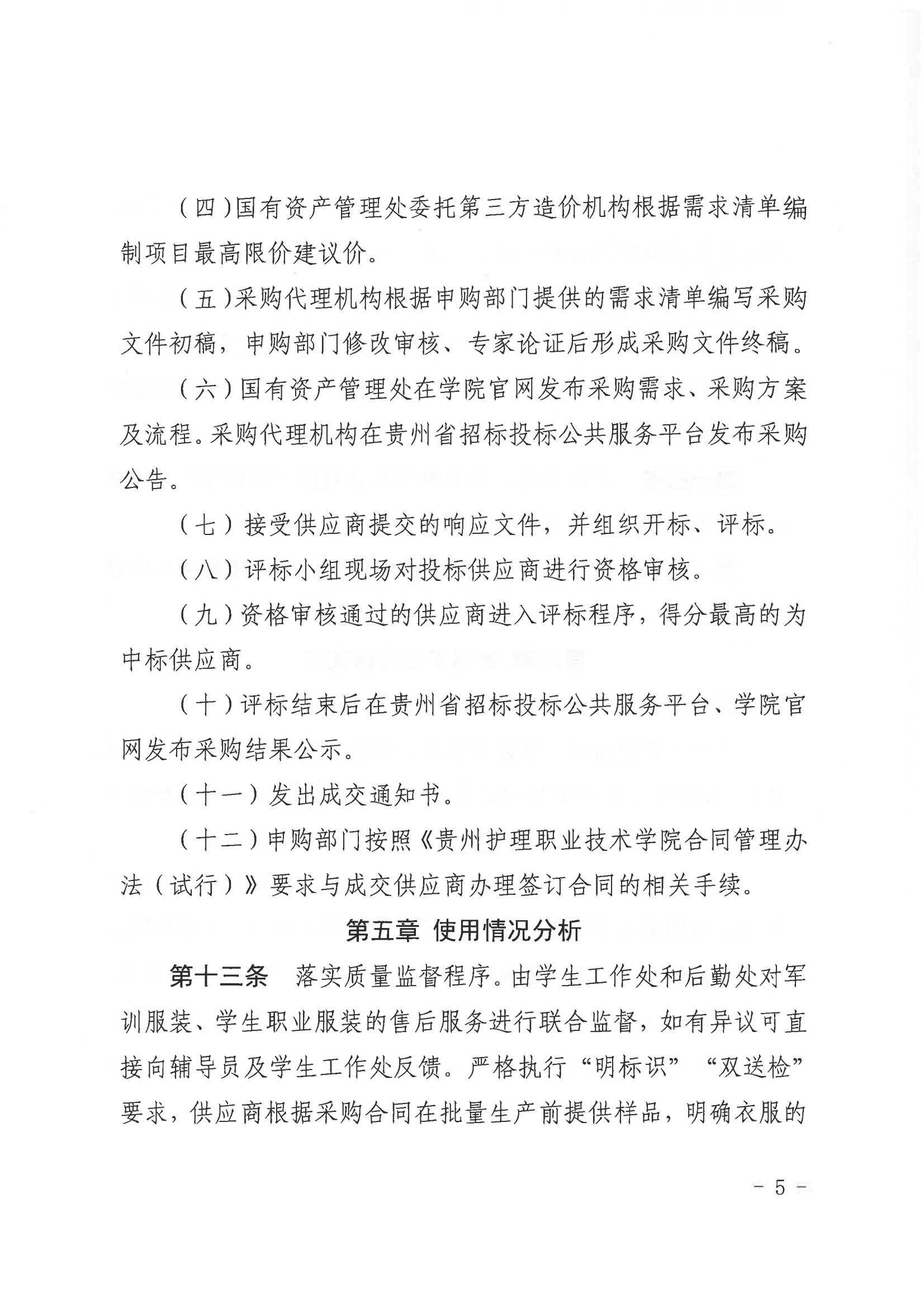 关于印发《贵州护理职业技术学院军训服装和学生职业服装采购实施细则(试行)》的通知