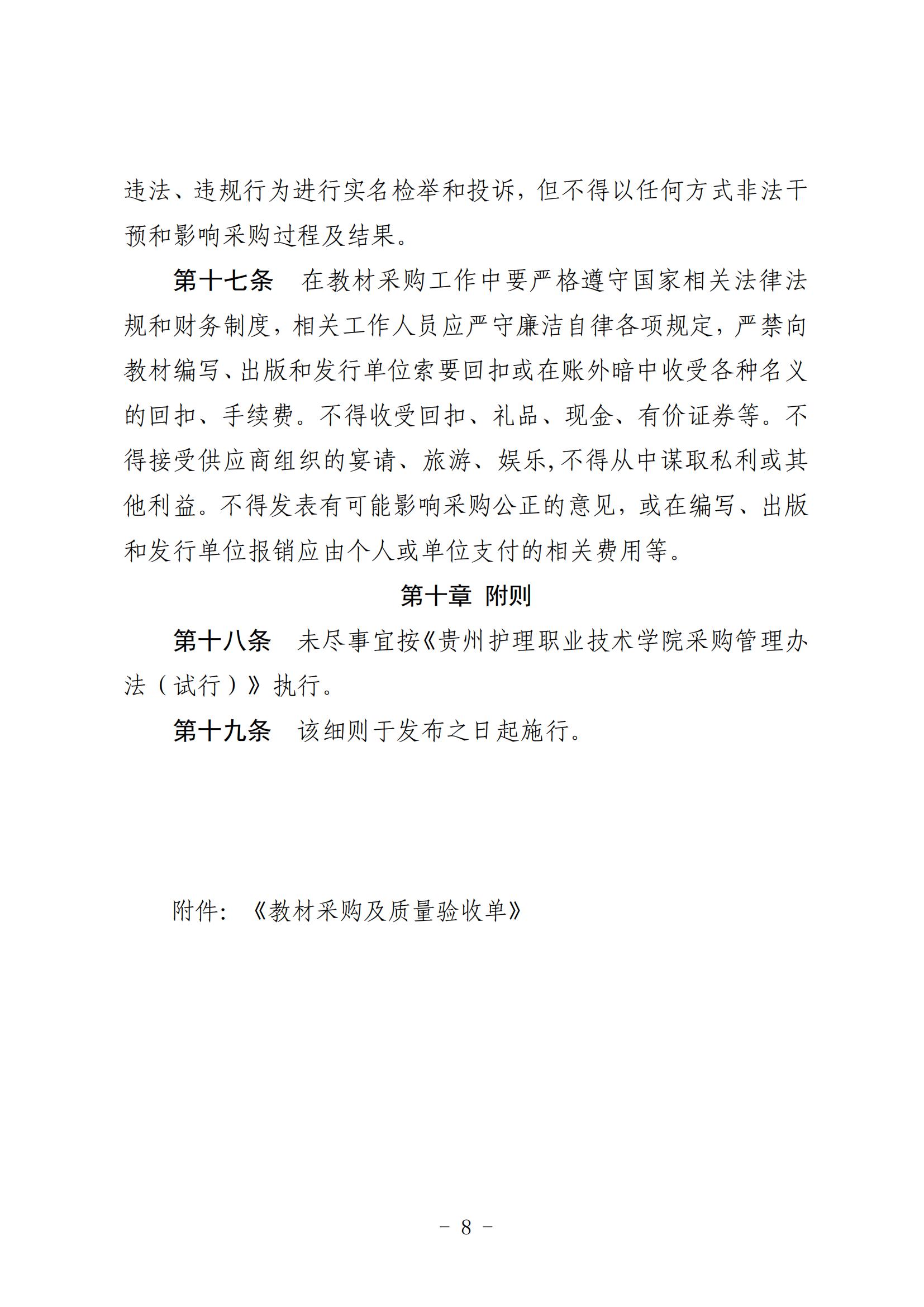关于印发《贵州护理职业技术学院教材采购实施细则(试行)》的通知